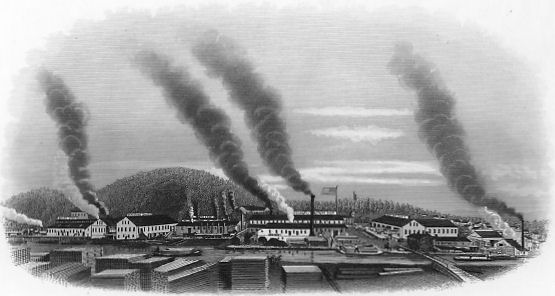 In 1891 the capacity of the plant was judged to be 10 thirty-ton hopper cars a day or 3,000 cars a year, with average employment of 400 workers. The plant contained a saw mill that specialized in oak lumber and had 16 acres of pool for the storage of logs, which were purchased along the Susquehanna river and its tributaries and brought from Muncy dam by the canal. The plant was then located between the Philadelphia & Erie railroad and the West Branch canal, with a branch from the Philadelphia & Reading railroad running into it.