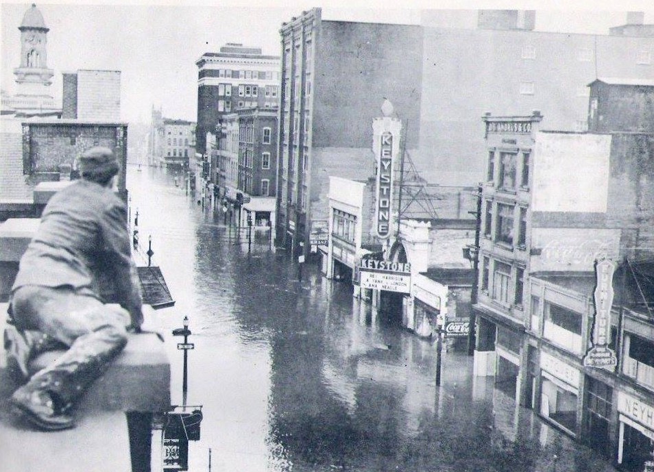 In the last week of May, 1946, there were 4 straight days of heavy rains. "In the mind of residents, the river was area was the ever-present danger of high water, water that could be seen rising as the result of four days rain... However, optimistic radio reports served to lull many into a sense of false security and not until quite late did this medium of warning begin to sound ominous. All doubt was removed with the sounding of the fire alarm at Lewisburg, and whistles at plants at nearby Milton." Residents awoke to find themselves in the midst of a full fledged flood.