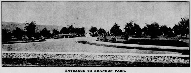 Brandon Park was originally laid out by engineer and lumberman Robert Fairies, but his plans were later taken up my a Mr Nielson, who had railroad engineers change some features before presenting to the Common and Select Councils, which both adopted them. There were such features as tennis courts, baseball diamonds, and swings in the park, coming before a regularly supervised playground was considered." - Thad Meckley