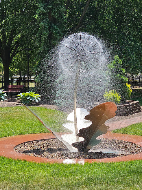 The Dandelion "Sprinkler" is located beside the Victorian House on the grounds of Penn College