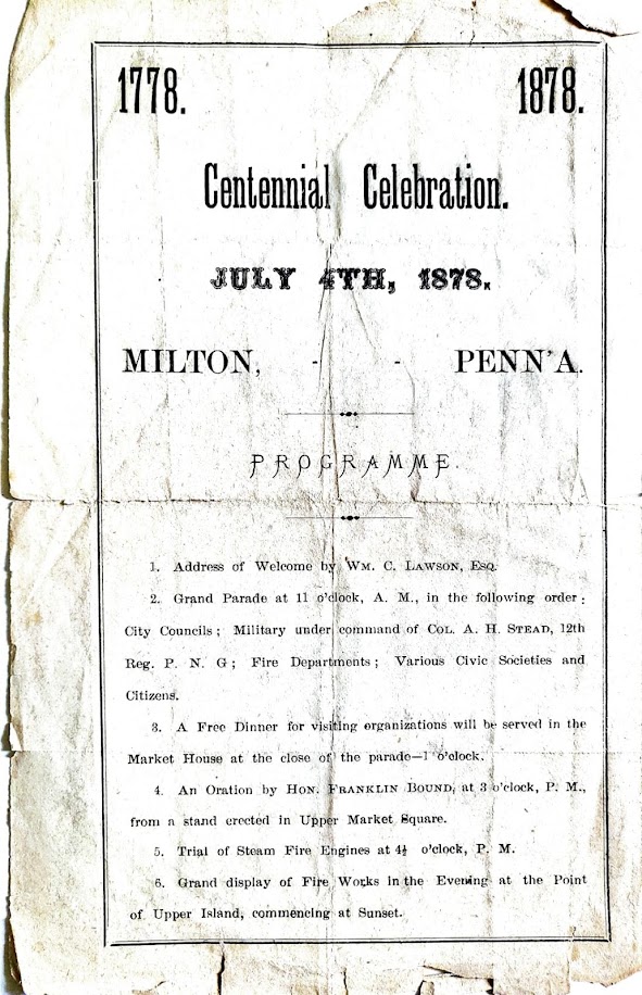 Milton Pa celebrated the Nations Centennial on July 4th 1878