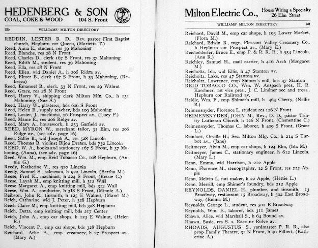 The Next Section is West Milton, New Columbia, and Watsontown, which I have put on their own pages.